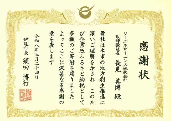 ジーエルサイエンス株式会社 福島工場は、福島に根を下ろした企業として「福島の発展に向けた支援」を継続すべく、2023年3月に伊達市にある保原工業団地の用地を取得し、2024年度より伊達市が推進する地方創生事業に対し支援させていただいております。
