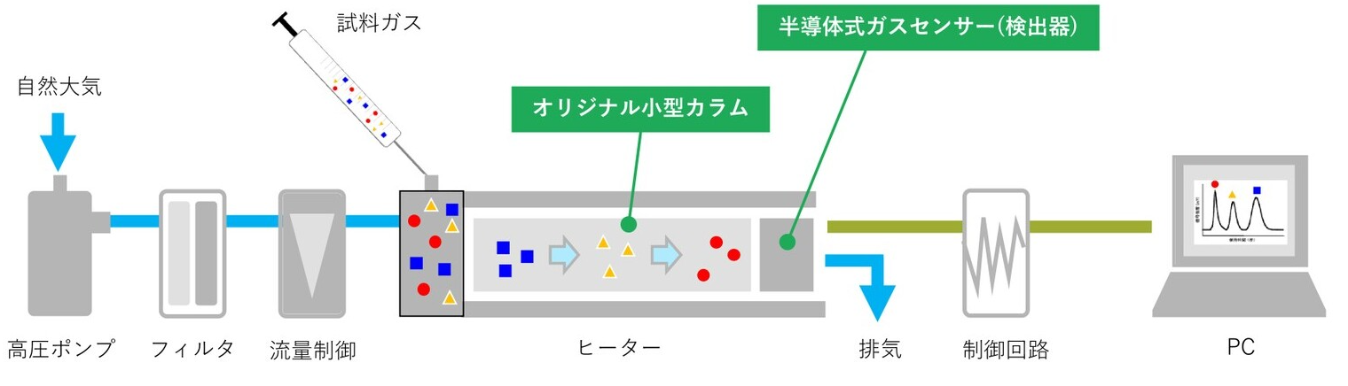 センサーガスクロマトグラフ(SGC)は、キャリヤーガスに自然大気を使用し独自に開発した