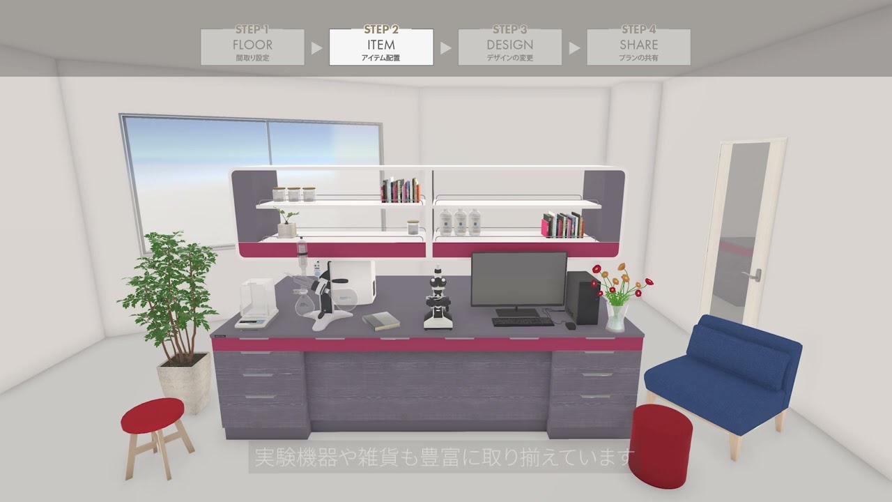 サイエンシングスタイルプランナーは、3つの簡単なステップで研究室を作成し、研究設備を自由にレイアウトすることができる、ORIENTALが開発したラボデザインシミュレーターです。