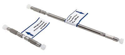 充填ガードカラム・充填ミニガードカラムは、高圧充填されているガードカラムで、分析カラムの性能をそのまま維持して分析することができます。長さ33mmと50mmのタイプが充填ガードカラム、長さ10mmのタイプが充填ミニガードカラムです。