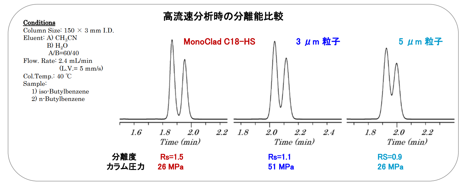 MonoCladシリーズは、スルーポアとメソポアの二重ポア構造をもつ円柱状のシリカ連続体を分離担体としたHPLC用シリカモノリスカラムです。低いカラム背圧を維持しながら高分離能を実現しました。