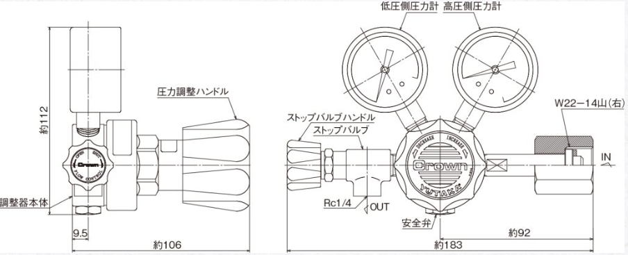 | 1段式 | BS | W22-14山(右) メス | Rc1/4(1/4PTメス) | GF1-2510-RX-V | 1台 | 3025-00001 | 23,000 |
