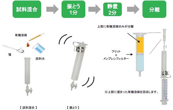 環境水などから化学物質などを有機溶媒で抽出する操作は、煩雑で時間がかかる作業です。