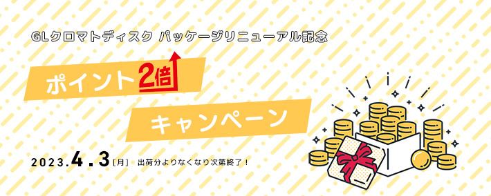 GLクロマトディスクのパッケージリニューアルを記念して、ポイント2倍キャンペーンを開催します。