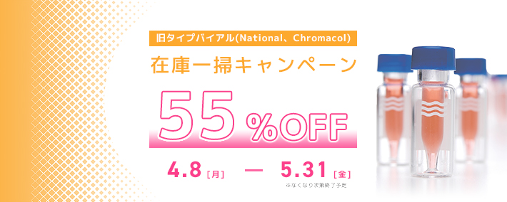 旧タイプのオートサンプラーバイアル(National、Chromacol)を55%OFFでご提供いたします。
