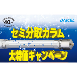 期間 12月1日(金) ~ 3月29日(金)ダイセル セミ分取カラム大特価キャンペーンこの度、株式会社ダイセルより【セミ分取カラム大特価キャンペーン】が実施されました。