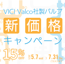 期間 5月7日(水) ~ 7月31日(木)VICI Valco社製バルブ新価格キャンペーンこのたびVICI Valco社製バルブが新価格となり値下げされてお求めやすくなりました!